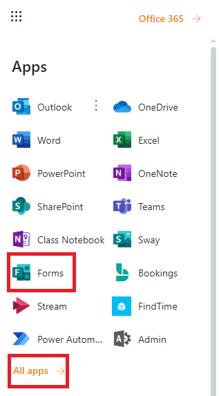 1. You can get to forms by navigating from your apps drawer on Microsoft 365