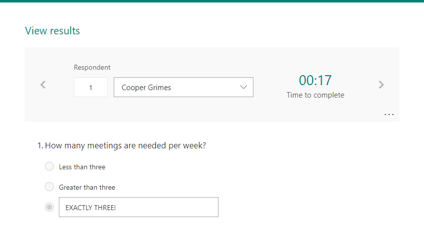 Clicking the View results button will allow you to see more detail, including who responded with what.