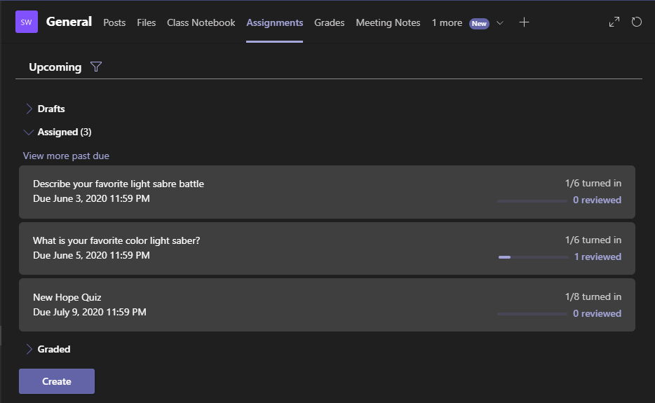 Creating Assignments and Quizzes in teams creates Forms which can be viewed and graded in teams.