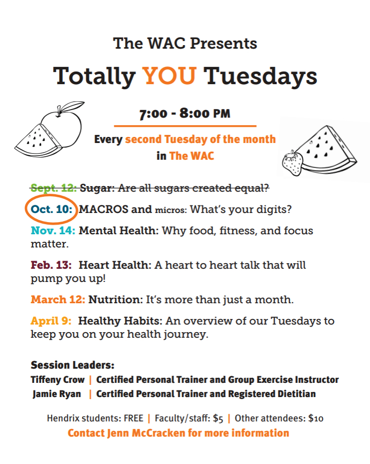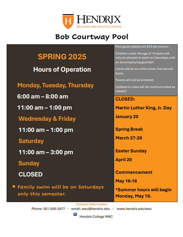 Please join our Facebook Group (Hendrix College WAC) for up-to-date hours and closings.